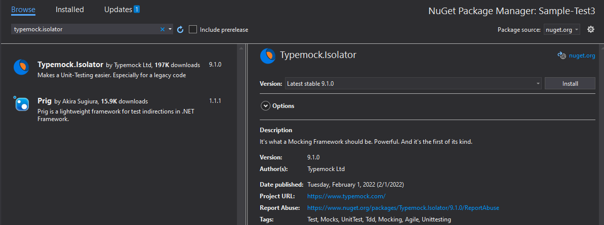Type "Typemock Isolator" and then choose what Typemock Isolator dll's version you need.