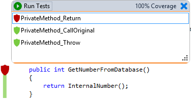 You can debug a specific failed unit test. Typemock Isolator adds a breakpoint in the beginning of the test. When running from the Method window, Typemock Isolator adds a breakpoint in the beginning of the method. You can run directly to the beginning of the method to debug it. The breakpoints are removed at the end of the debug session.