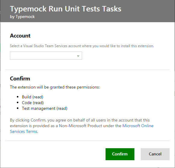 4. Select a Visual Studio Team Services account and click "Confirm":