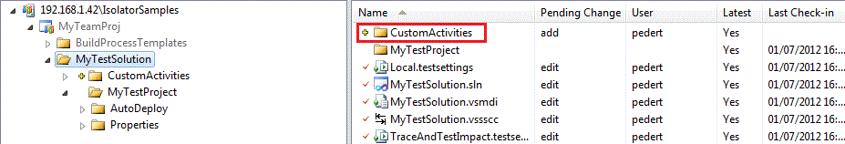 The following steps show how to use the custom Team Foundation Server activity and the template provided with Typemock Isolator to use in different scenarios.