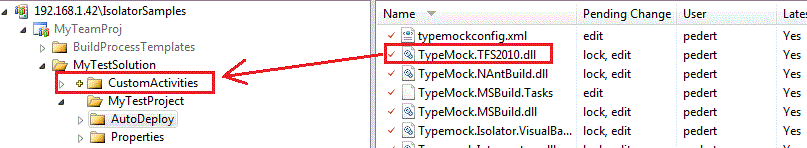8. Copy TypemockTFS2010.dll from the AutoDeploy folder to the CustomActivities folder.