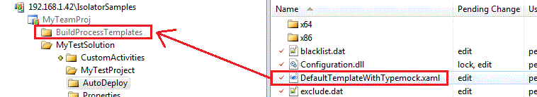 9. Copy DefaultTemplateWithTypemock.xaml from AutoDeploy folder to the BuildProcessTemplates folder.