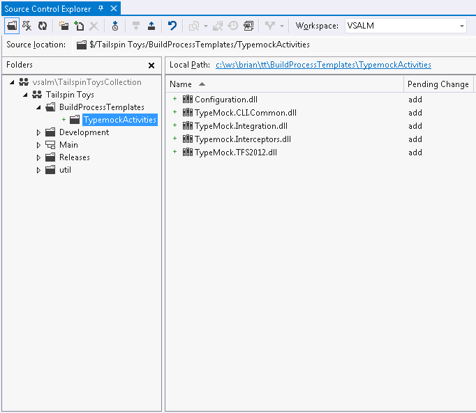 In Visual Studio, in Source Control Explorer, under your project, create a new folder called CustomActivities, which will be used by your build controller.