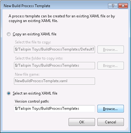 6. Select the Select an existing XAML file option